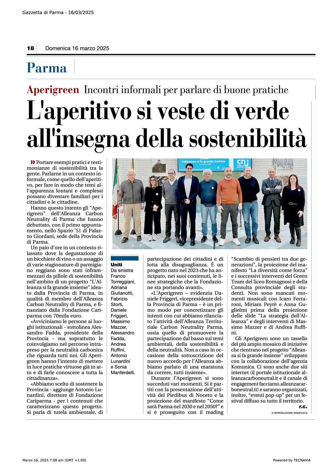 A. Fadda, President of the Province of Parma, summed up the spirit of the event well in his welcome address to the guests: "The aperigreens aim to highlight virtuous practices already in place and to make them known to all citizens".