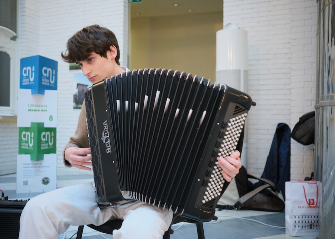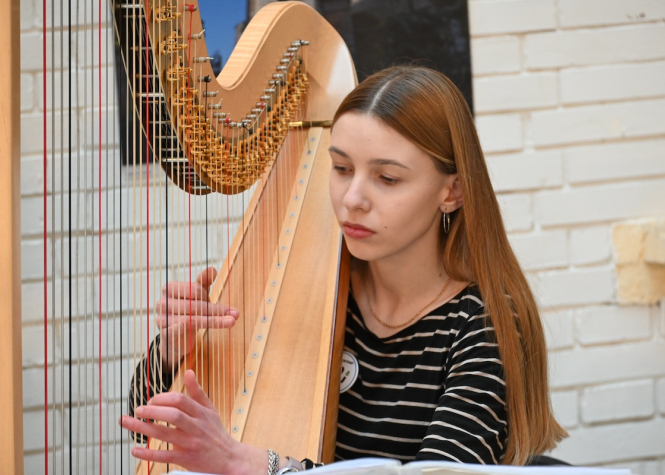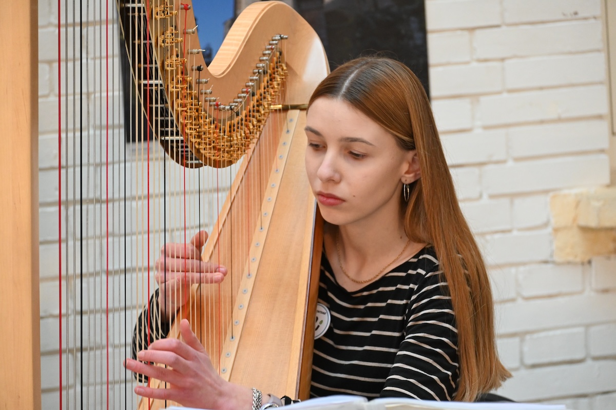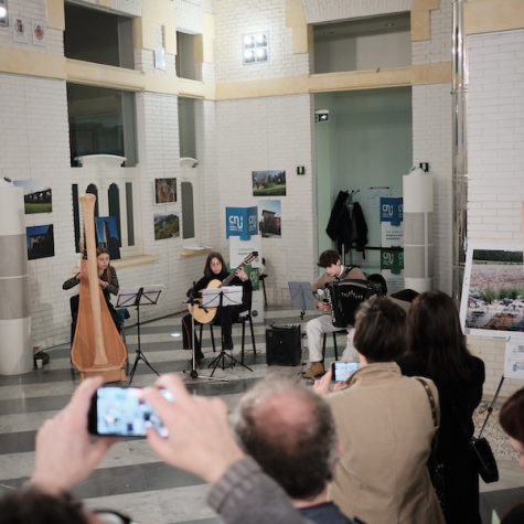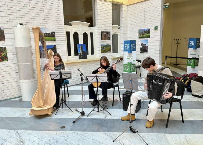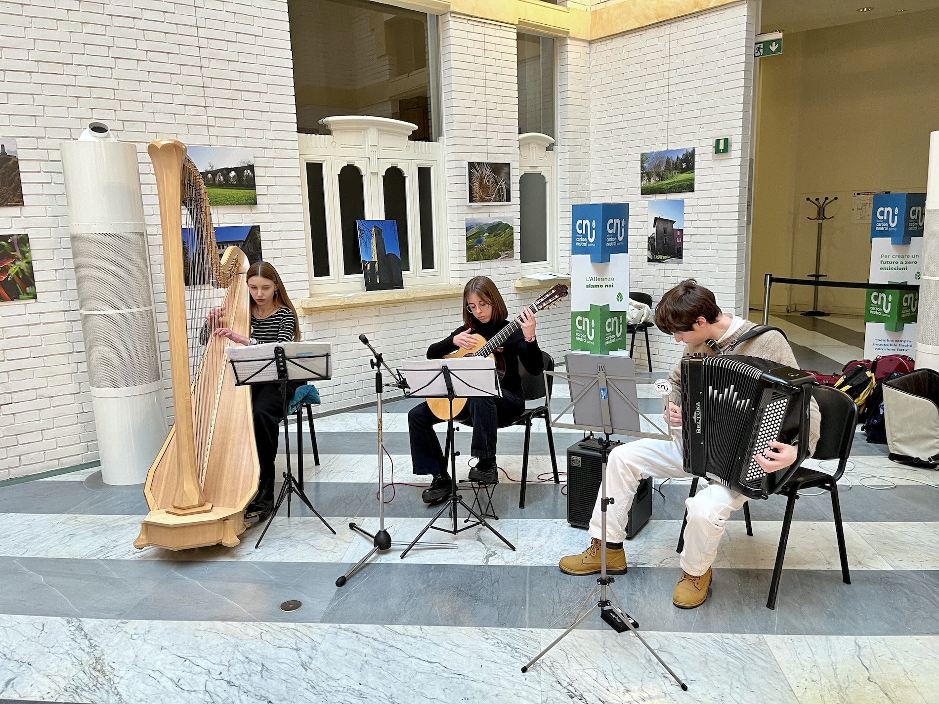 Icaro Ferraroni on the accordion, Miriam Peyrè on the guitar and Anna Guglielmi on the harp performed